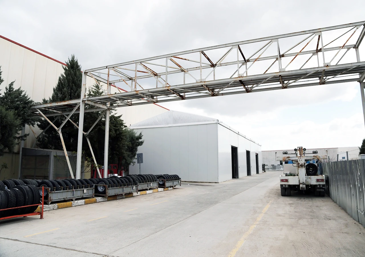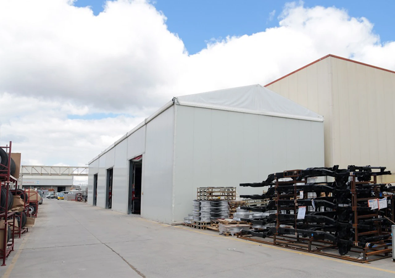 Anadolu Isuzu quickly achieved a high-quality, safe, and durable storage area with this 1,150 m² modular tent. The speed of installation and technical flexibility offered by the T-Line system contributed to operational efficiency.