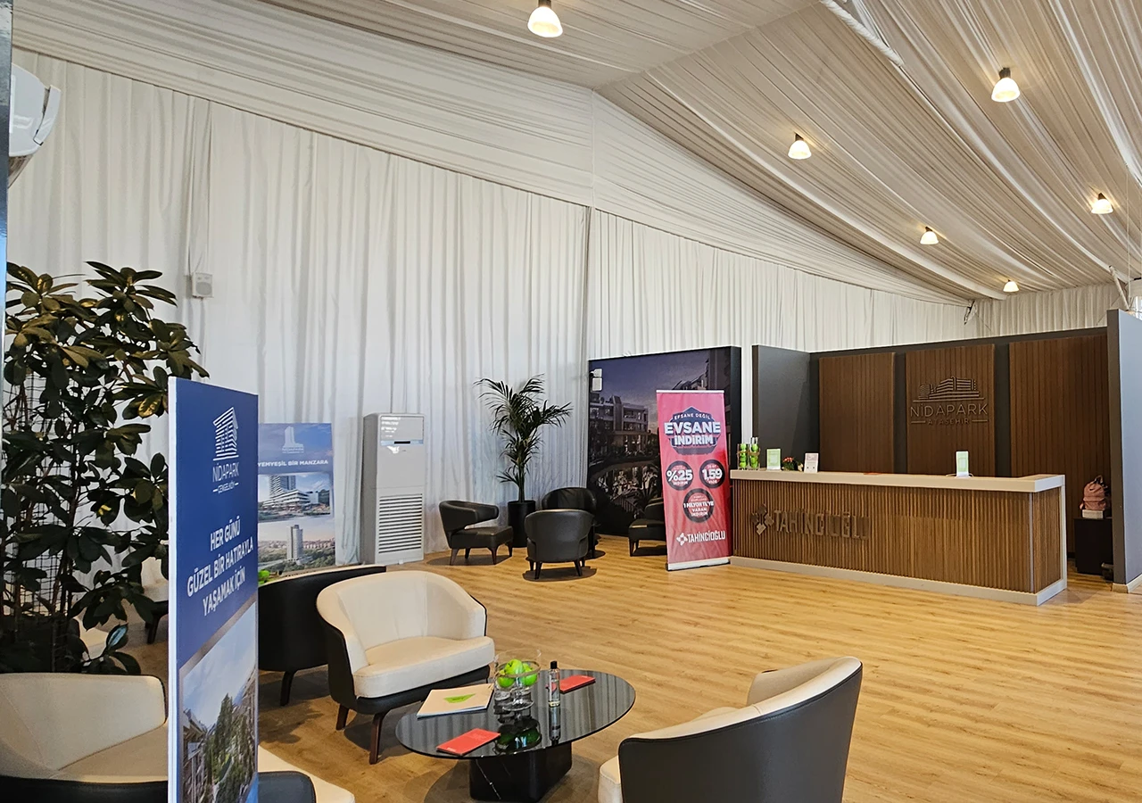 Thanks to the 450 m² Solution Series sales office, established in just two weeks, Tahincioğlu achieved a modern, stylish, and functional customer reception area for its Istanbul project. The structure not only enhanced the brand's prestige but also offered the advantages of rapid installation and operational efficiency.
