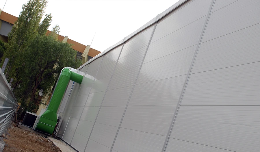 Mekanik havalandırma ve egzoz sistemleri, hava değişiminin kontrollü şekilde sağlanması gereken endüstriyel çadır projelerinde kullanılır. Fanlar, egzoz sistemleri, kanal yapıları veya hava dağıtım elemanları sayesinde iç ortam havası düzenli olarak yenilenebilir.