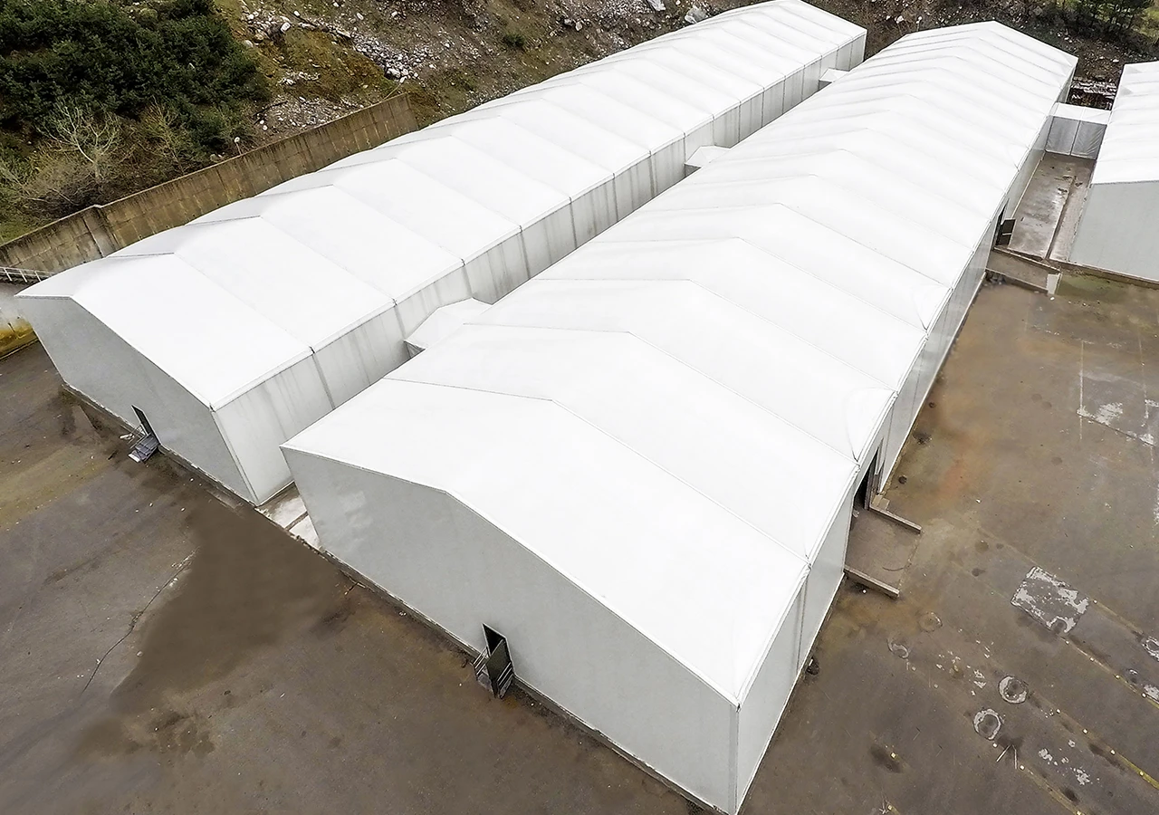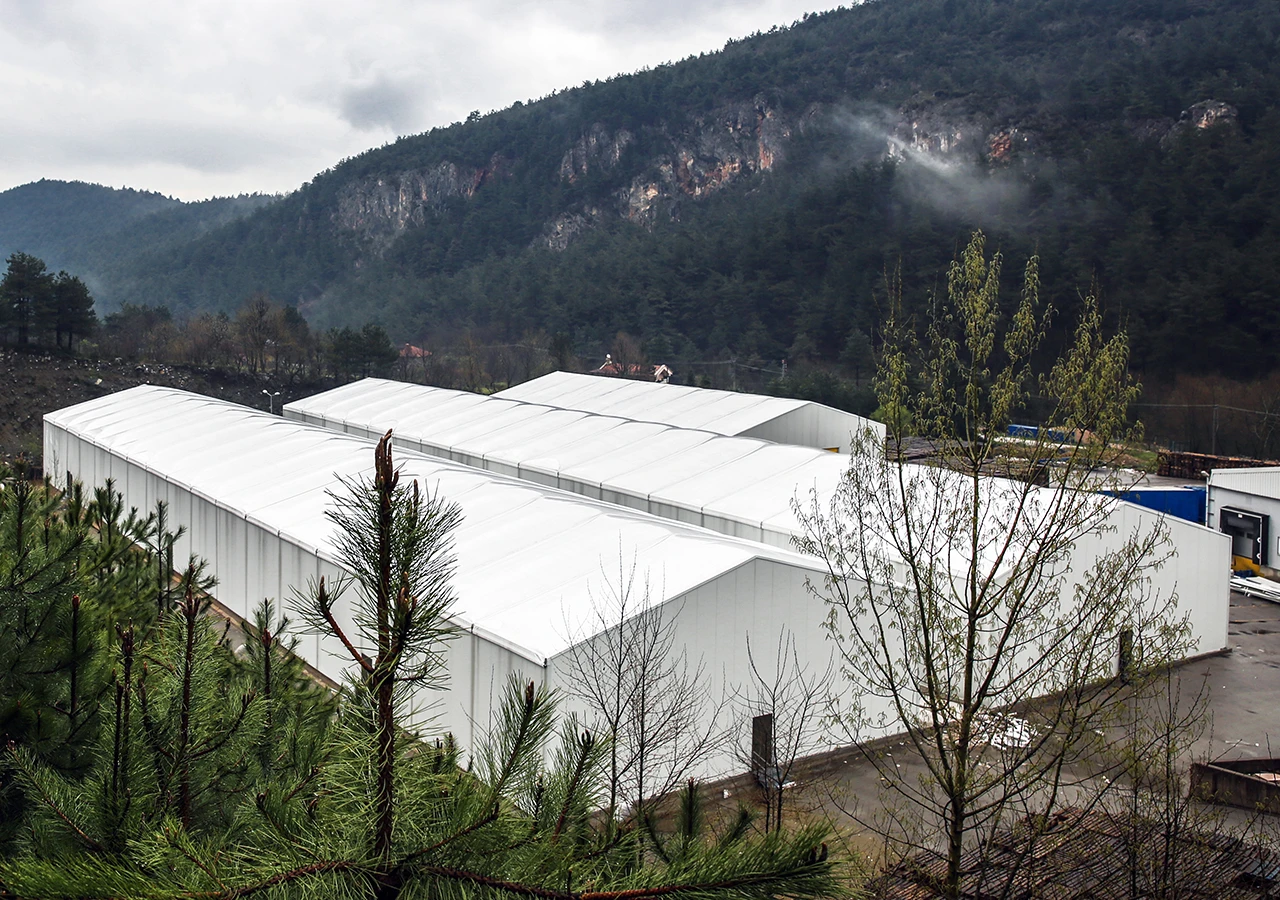 Erikli’nin büyüyen üretim hacmine paralel olarak ihtiyaç duyduğu depolama alanı için, 210 metre uzunluğa sahip T-Line serisi depo çadırı kurulmuştur. Gıda sektörüne uygun hijyen standartları, iç hava dengesini koruyan yapı özellikleri ve operasyonel esneklik göz önünde bulundurularak tasarlanan bu yapı, ürün güvenliği ve lojistik sürekliliği açısından güçlü bir çözüm oluşturmuştur.